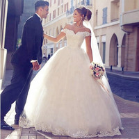 ชุดเจ้าสาวปิดไหล่ลูกไม้,ชุดแต่งงานมุสลิมแบบกำหนดเองยี่ห้อชุดแต่งงานที่สง่างาม De Mariage