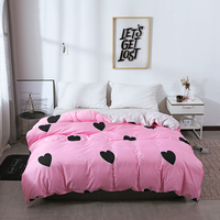 핑크 하트 프린트 침구 세트 럭셔리 품질 부드러운 통기성 이불 커버 세트